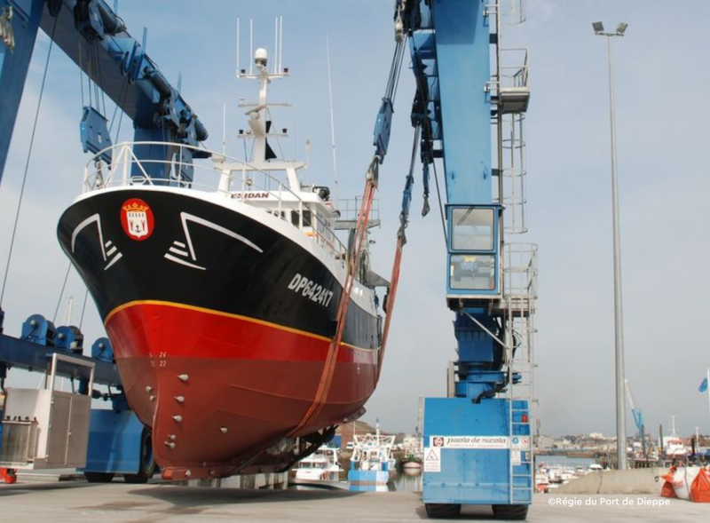 […] L'aire technique de réparation navale de Dieppe s'impose comme un pôle central en Manche-Est pour la pêche et les navires de servitude. Entièrement réaménagée depuis 2010 au fond du bassin de Paris, cette infrastructure voit sa fréquentation augmenter régulièrement depuis deux ans, portée par l'implantation de nouveaux acteurs et le renforcement de son réseau de prestataires.